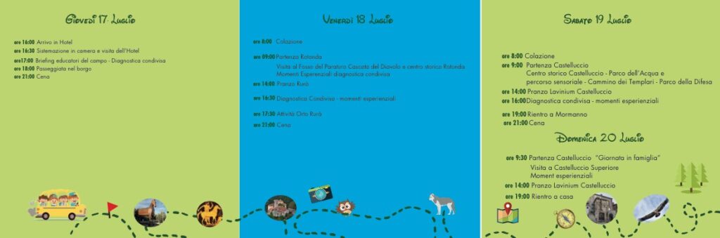 sabato 19 Luglio come da programma allegato è prevista una visita a Castelluccio inferiore con visita al Centro Storico, al Parco dell’Acqua, al Cammino dei templari e al Bosco Difesa  con pranzo presso Fiumara del Pegno .